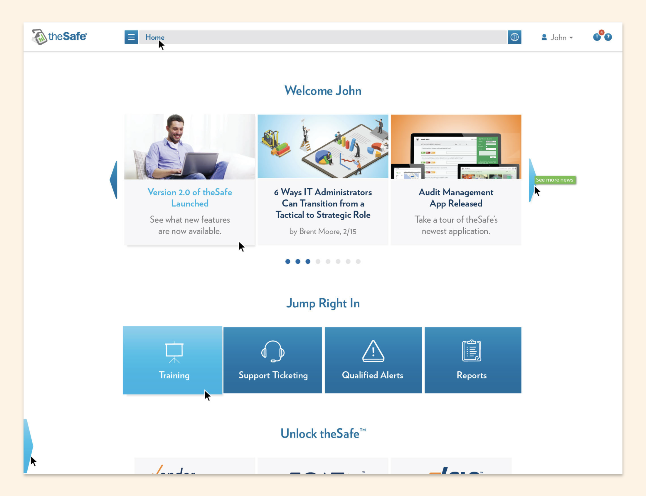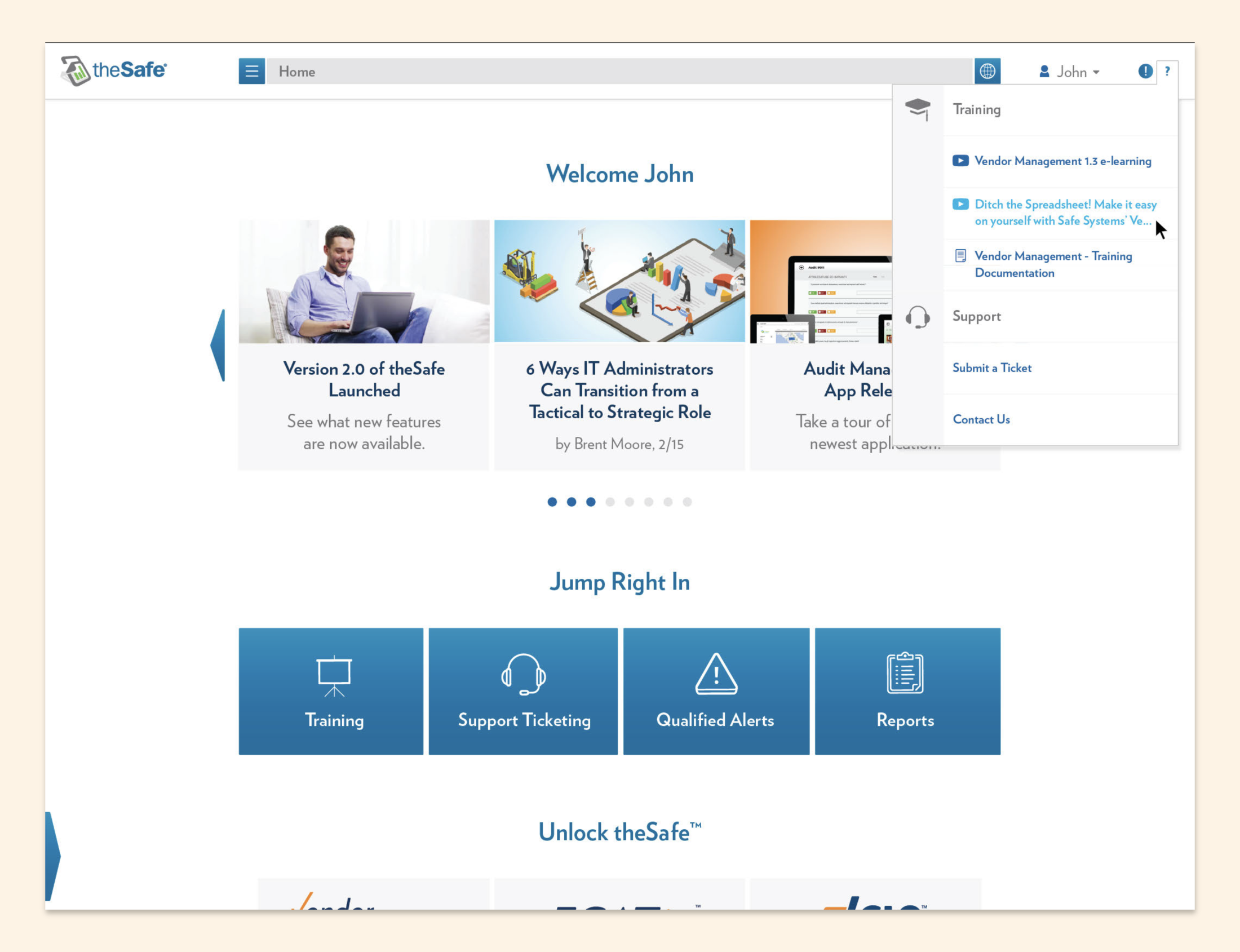 For 10 years at Safe Systems, I was the sole creative, but I wasn’t alone. I worked closely with the Development team to completely revamp our user portal, “theSafe.”